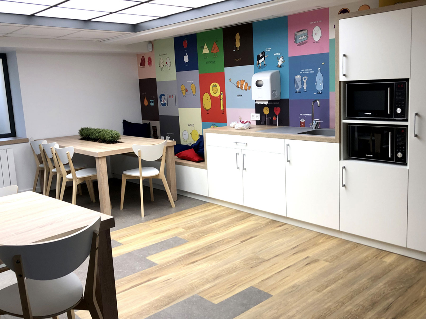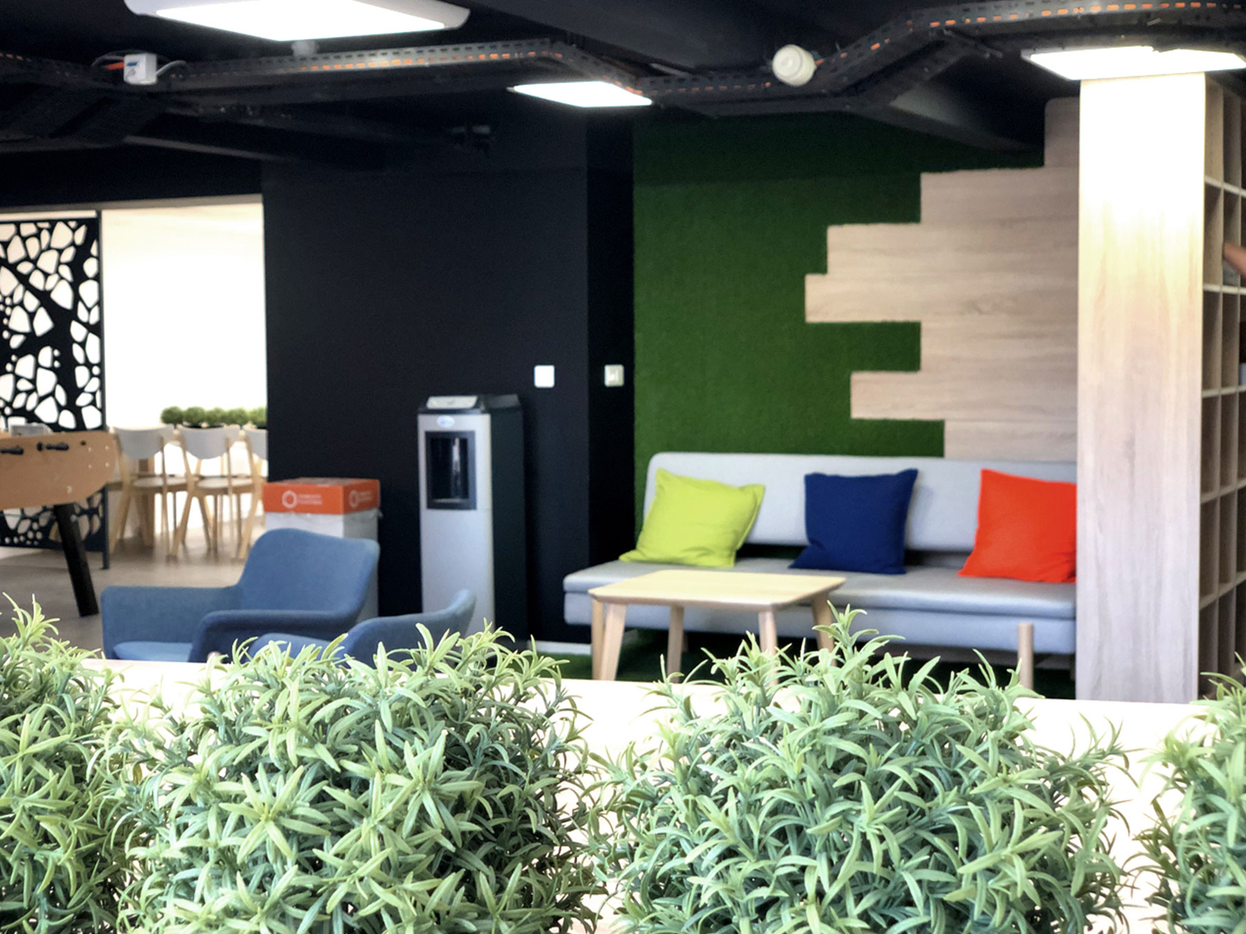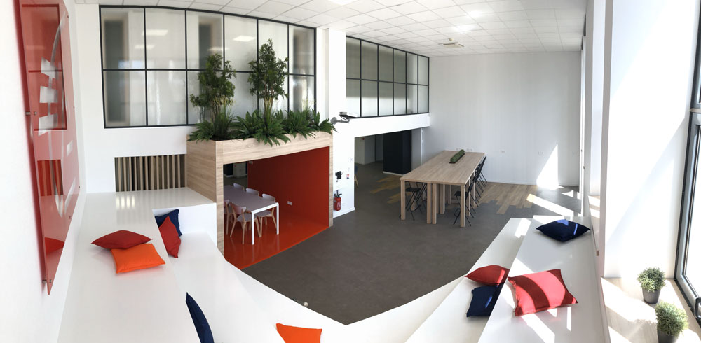 Place à la couleur dans ce projet d’agencement de bureaux. Nous avons créé différents espaces : de coworking, de détente et de travail. Le tout avec des couleurs vives pour apporter du dynamisme et de la gaieté aux espaces de travail.